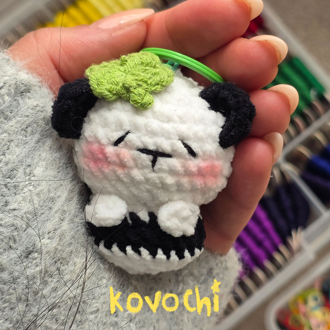 اکسسوری چارم کیف پاندا با شبدر - قلاب بافی