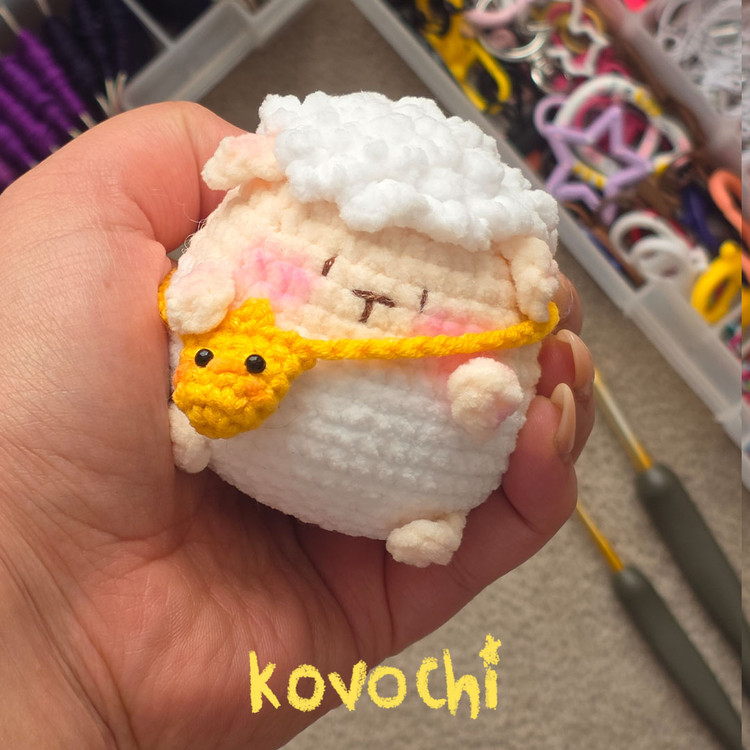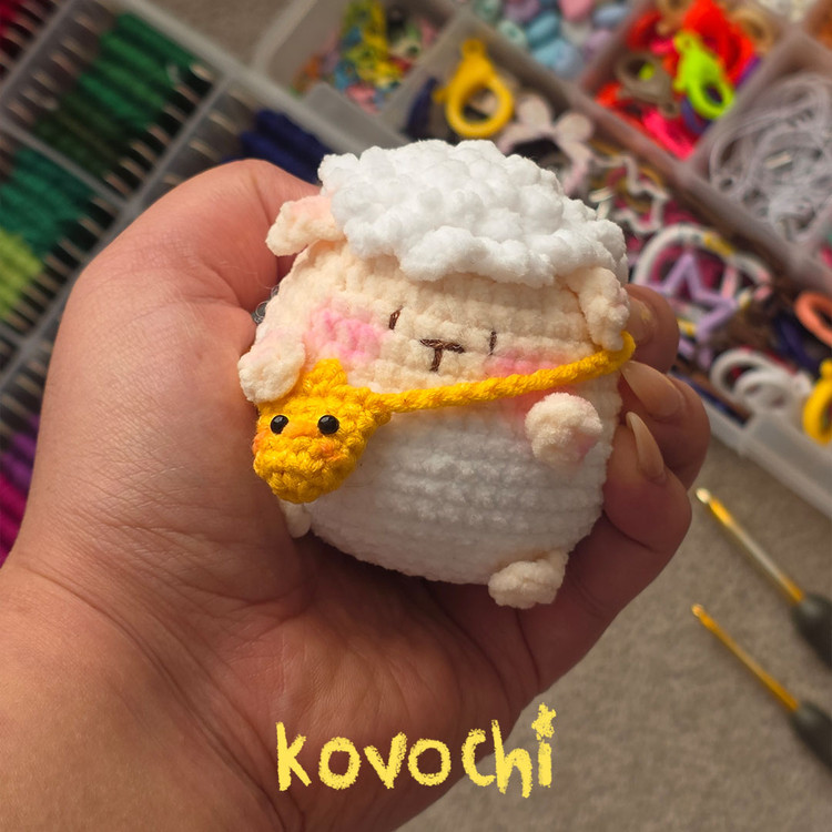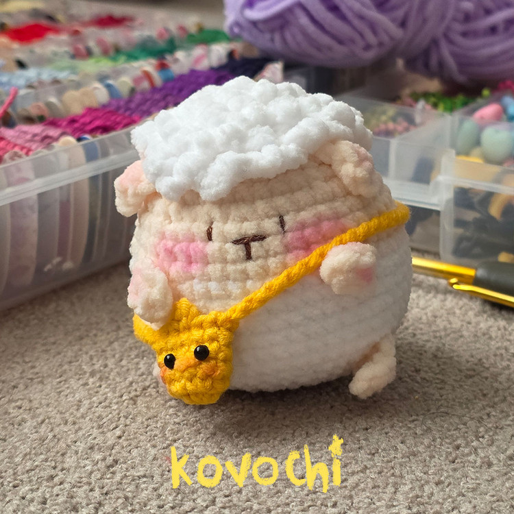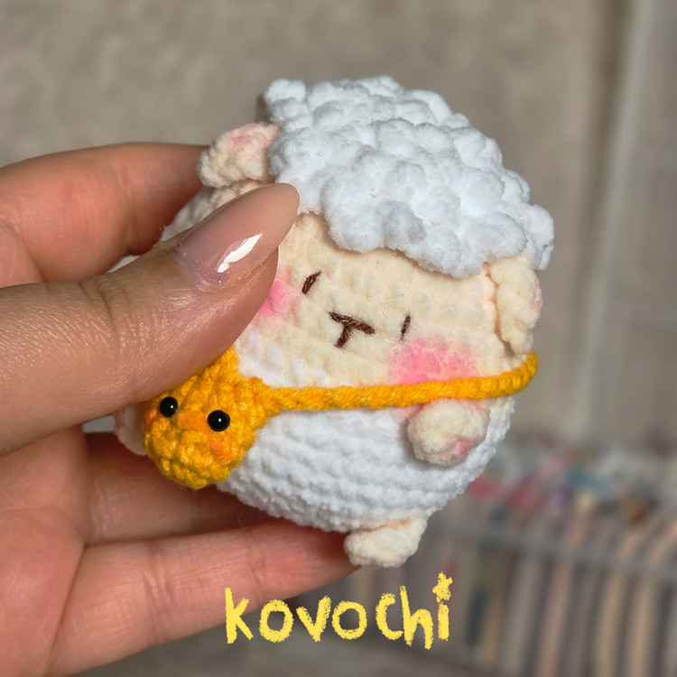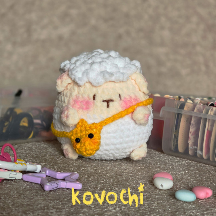 عروسک بافتنی گوسفند با کیف - قلاب بافی