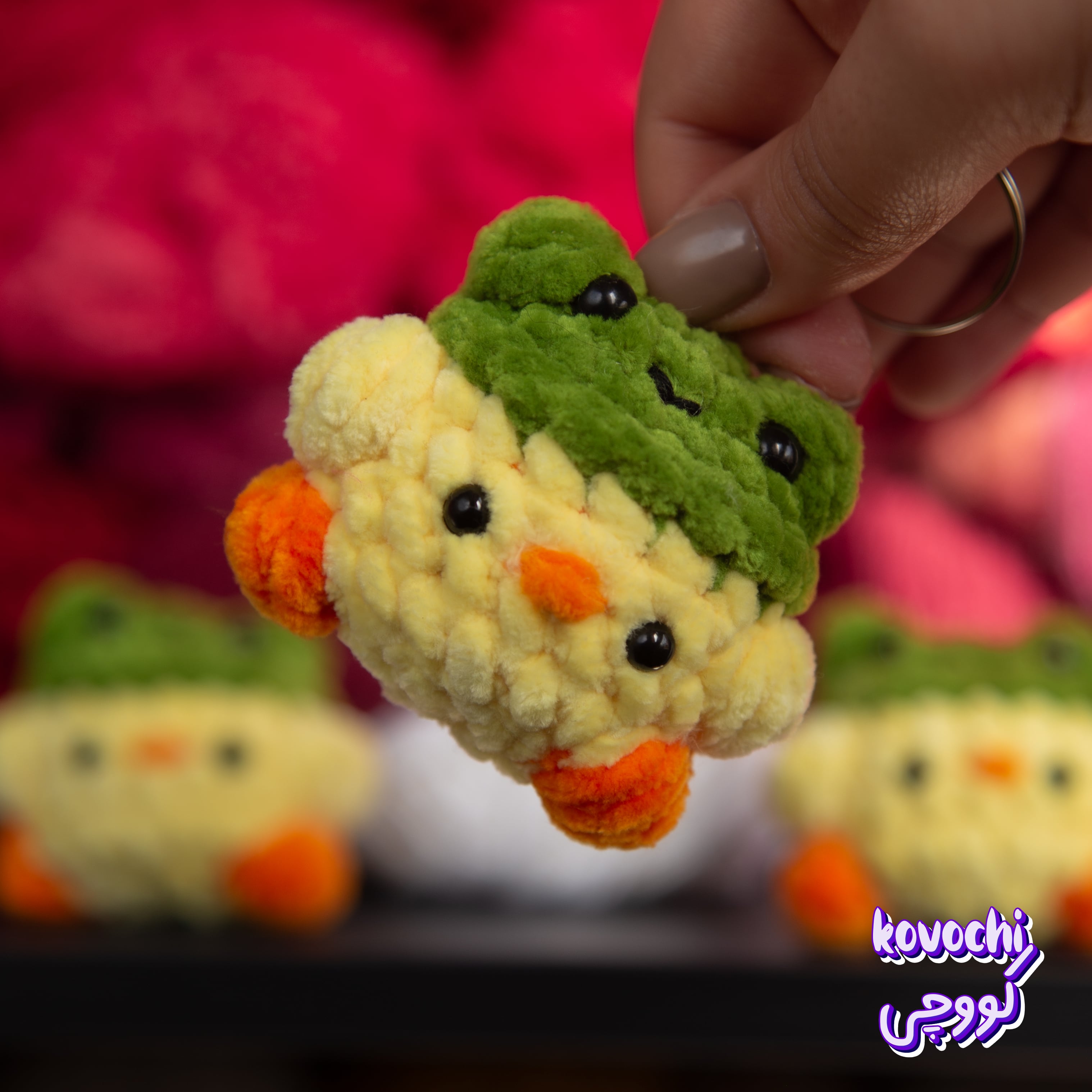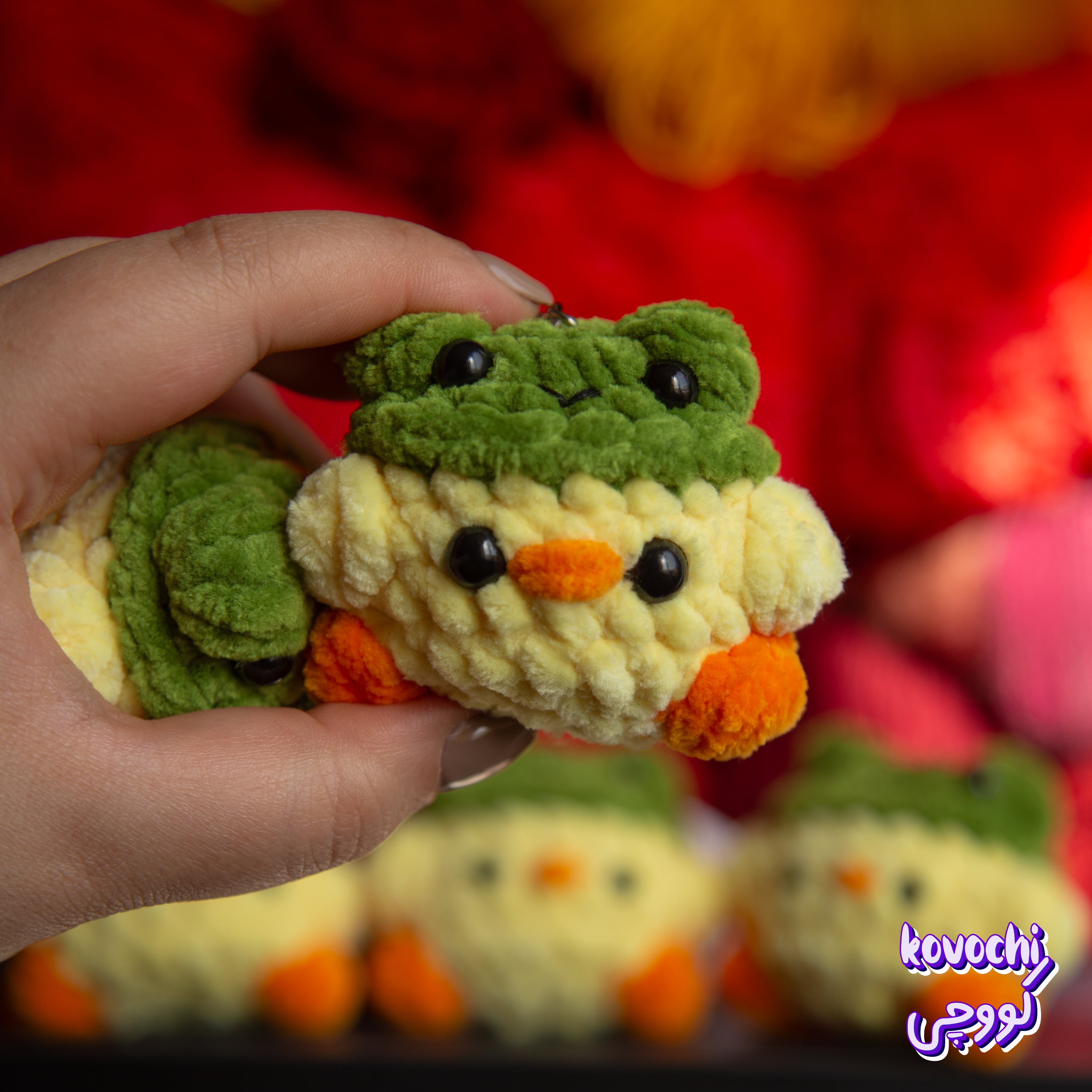 عروسک بافتنی جوجه با کلاه قورباغه - قلاب بافی