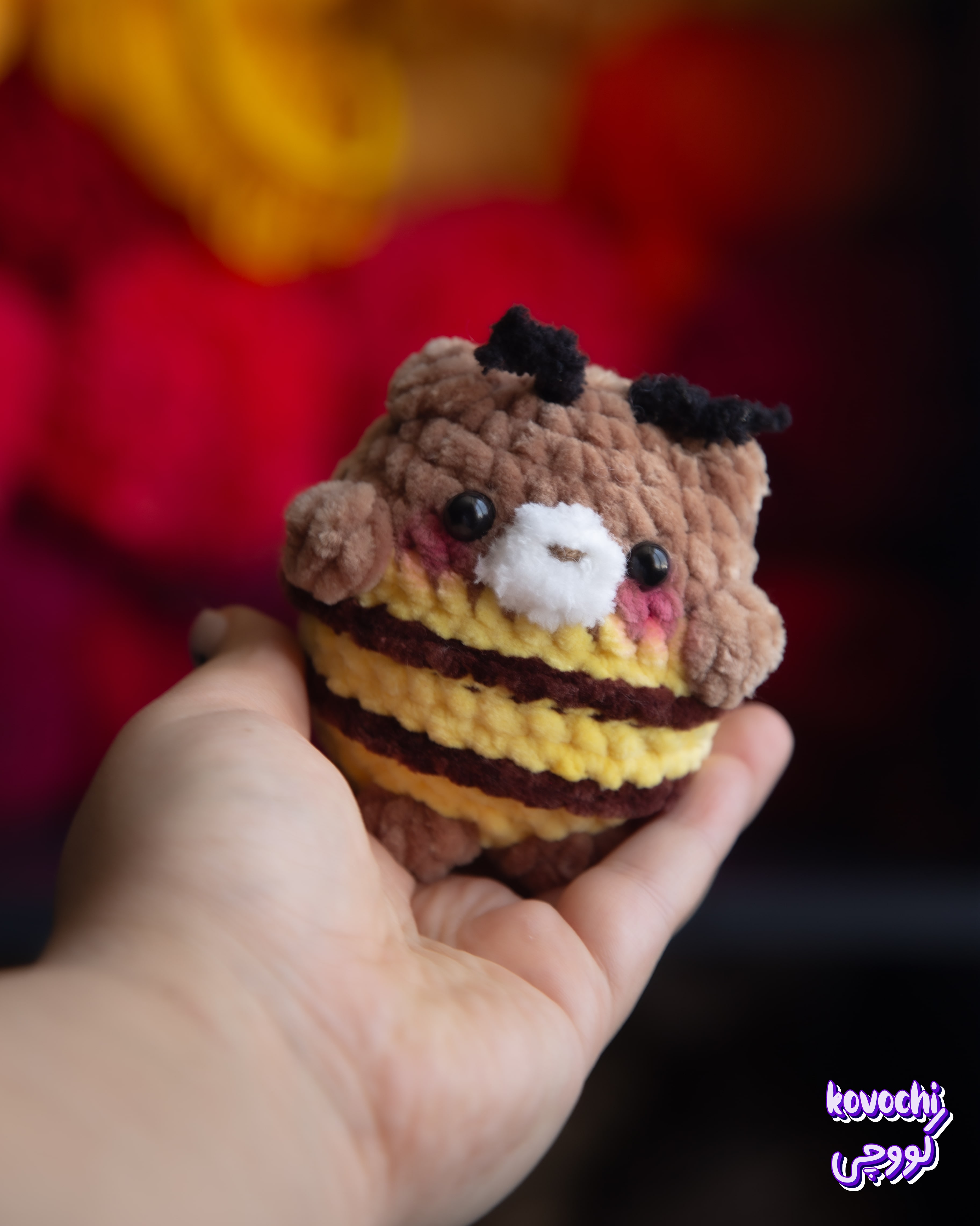 ناموجودعروسک بافتنی خربور - ترکیب خرس و زنبور - قلاب بافی